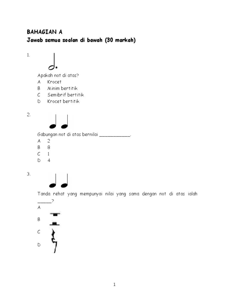 Nilai Not Muzik Krocet Bertitik - Soalan Muzik Tahun 6 Pdf